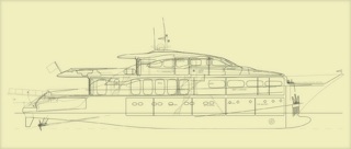 Il progetto di questo yacht ,inizialmente di 35 metri, è stato condotto su precise linee guida indicate dalla committenza indirizzate ad ottenere una barca dagli interni classici rivisitati in chiave moderna. L’atmosfera ottenuta ,caratterizzata dell’attento bilanciamento delle masse e del colore, è finalizzata a conseguire un ambiente confortevole, estremamente vivibile e dagli alti connotati scenografici in grado di esprimere un elevato livello di “rappresentanza”. Il progetto di questa barca è inteso a recepire le indicazioni del cliente, fortemente attratto da yachts dalla linea slanciata e moderna . I forti richiami stilistici alle barche progettate da John Bannemberg , particolarmente apprezzate dalla committenza, hanno indirizzato la progettazione e conferito la “personalità ” dell’imbarcazione.