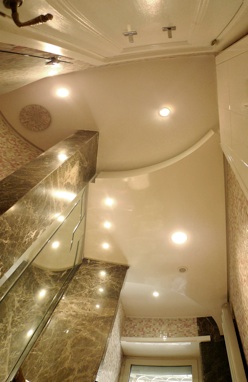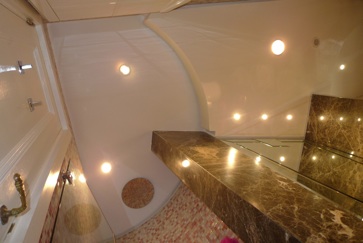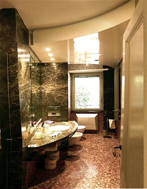 The project has been developped with a wide use of precious materials as mosaiques, marble, maple and lacquered woods.