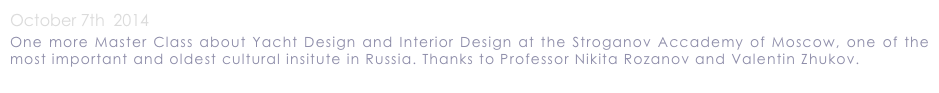 I have been invited for a Master Class about Yacht Design and Architecture at the Business&Design school of Moscow. I would like to thanks everybody for the warm welcome during the lesson. It was nice to talk about design and architecture and was a great experience with plenty of nice and interesting people.